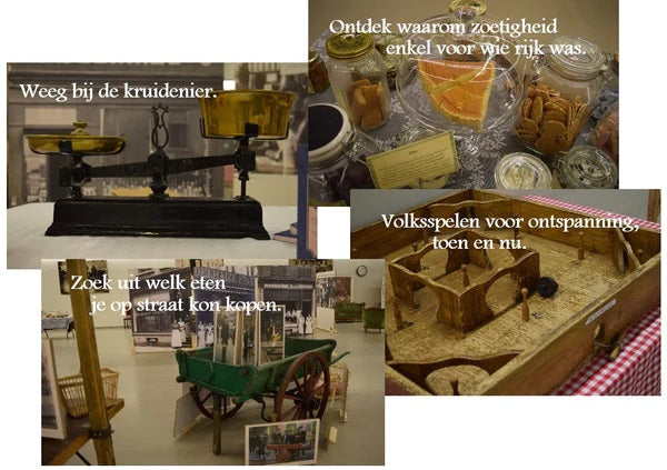 Tijdens de interactieve expo “Armzalig en rijkelijk eten aan de 19e-eeuwse tafel in België” kan je samen met je gezin allerlei leuke opdrachten uitvoeren zoals koffie wegen bij de kruidenier van vroeger,... Bij het oplossen van één van de opdrachten mogen de kinderen draaien aan het rad en het rad bepaalt welk snoepje van vroeger ze mogen proeven.